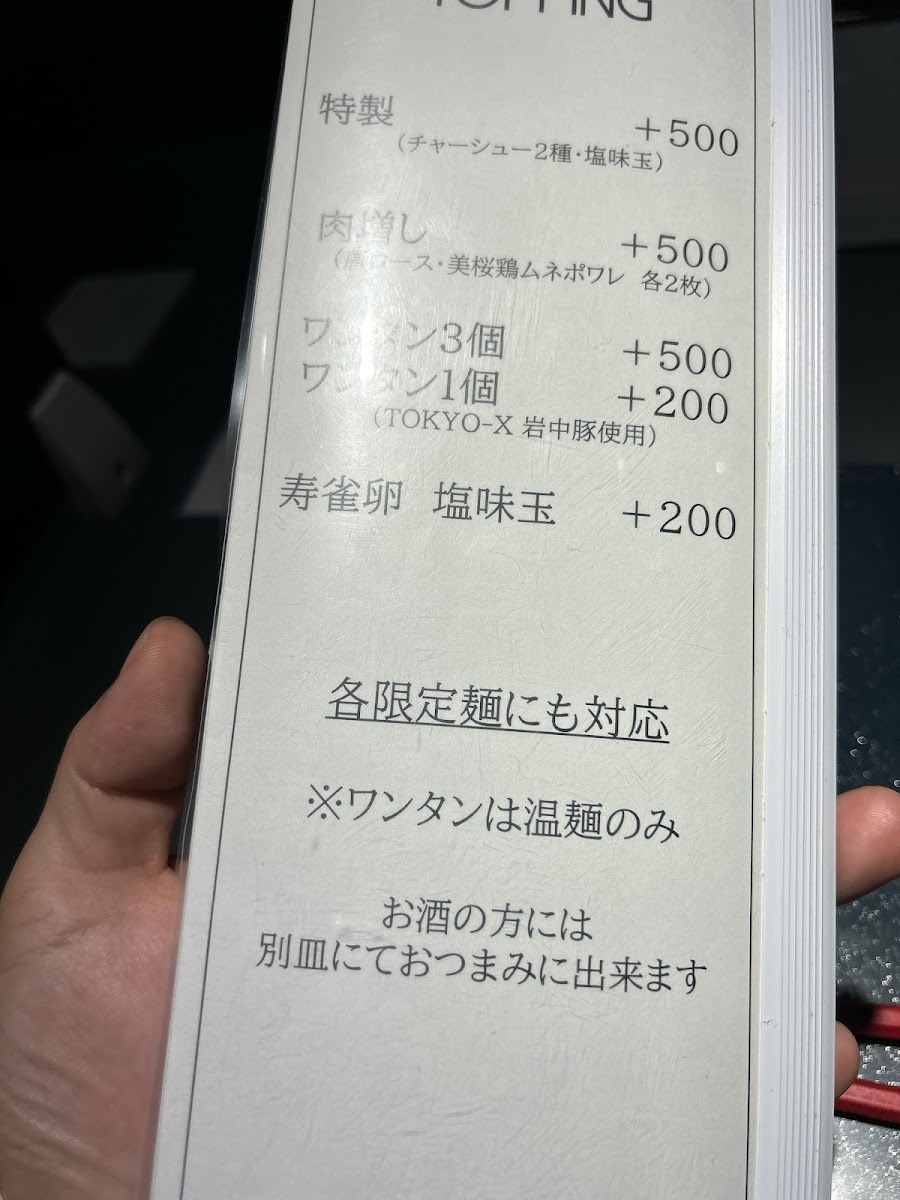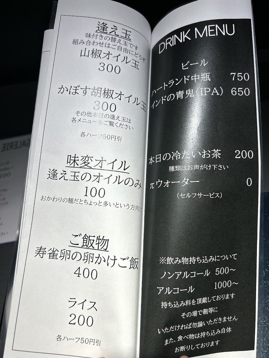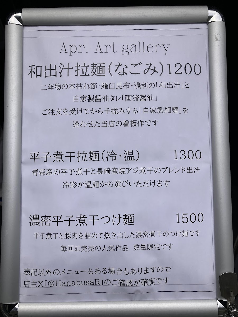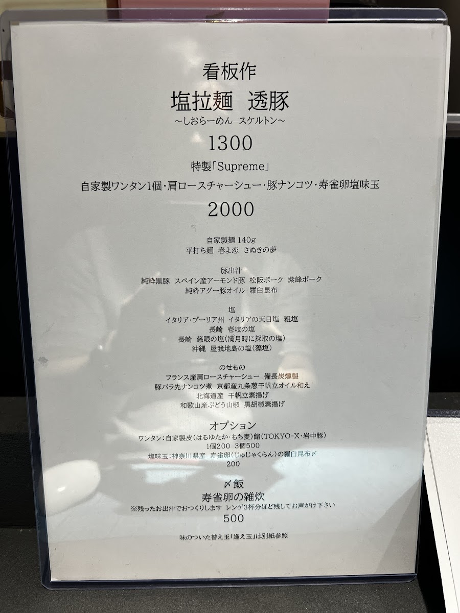 Introducing the menu of noodle art gallery Ryota Tezuka, located in the heart of Chuo City, Tokyo, is like stepping into an artistic culinary experience. The ambiance is sleek, with a stylish black interior that gives a gallery-like feel. Their specialty is the salt ramen, masterfully crafted using high-quality, homemade noodles that boast a unique texture and fragrance. The rich broth, a delicate blend of chicken and seafood, is visually stunning with its clarity and exceptional flavor.